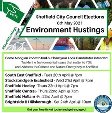 All the parties have some good things to say about the environment but they lack the urgency required to react to the emergencies we are facing. Labour say “ We are working with Sheffield Climate Alliance towards making our city carbon neutral. This includes 100,000 extra trees as part of Labour’s Trees and Woodland strategy. Major investment in parks and green spaces and £50 million for connecting Sheffield-a project to promote walking, cycling and public transport across the city.” They will also be continuing the grey to green project in the city centre.