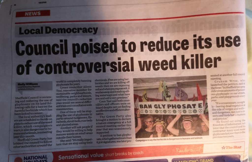 There is news today on Sheffield Council’s plans to reduce the use of Glyphosate.