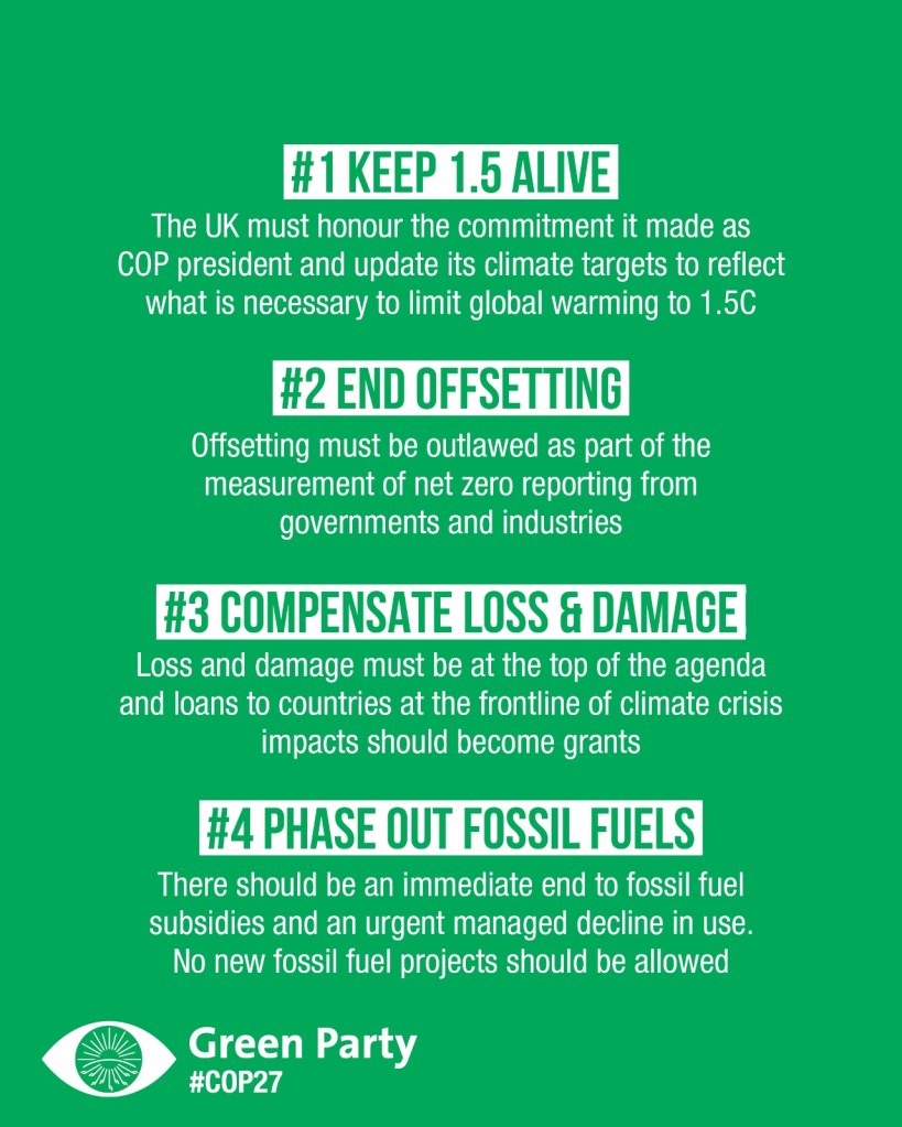 The Green Party didn’t get to make a speech at the rally but here are their 7 demands for COP27