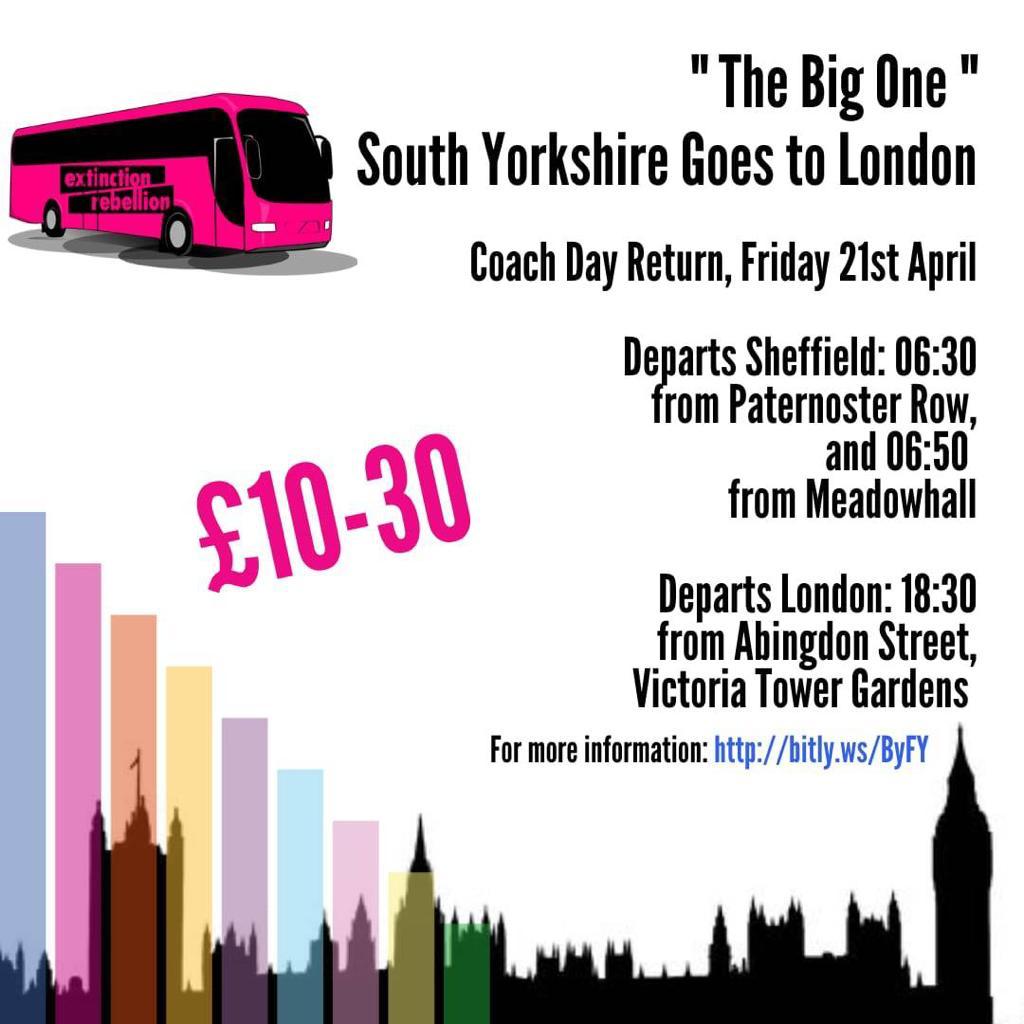 If you are concerned about the climate emergency please join us at the Big One from April 21st-24th. There are coaches from Sheffield. The Big One is being supported by Extinction Rebellion, Greenpeace, CND. PCS Union, Friends of the Earth, CAFOD and many other campaigning groups.