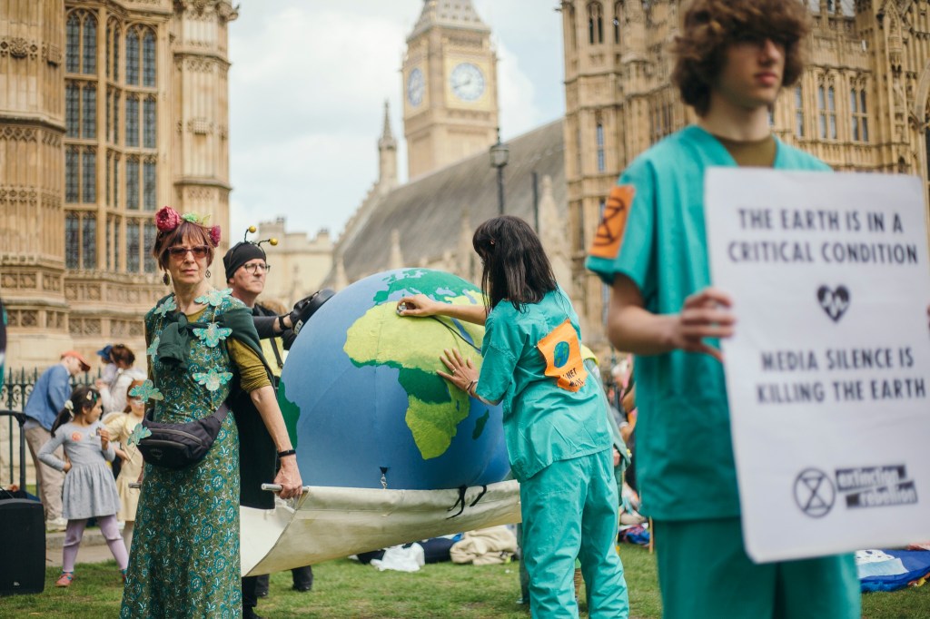 Loz Barfoot from XR Sheffield said “ It was encouraging and inspiring seeing so many people in the streets outside Parliament and Westminster this weekend. But beneath the excitement was anxiety, and this ate at me as I travelled back to Sheffield and checked the BBC News headlines for our story. The silence from mainstream media was deafening, and it pains me that this establishment works so hard to interrogate disruptive actions and activists, but at the biggest nondisruptive action in Extinction Rebellion’s history, they do not cast a light. It is more obvious to me now than before, these institutions are complicit in manufacturing the problems we campaign against, and they are also complicit in forcing the hand of disruption themselves.”