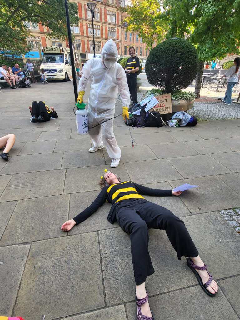 In the speech, the Queen highlighted how flying insects have declined by 60% in the last 20 years. She firmly put the blame for this on humans, who “ keep destroying our sources of food, spraying us and our food with poisons, like insecticides, weed killers and pesticides.” She was particularly damning of Sheffield City Council saying “In Sheffield, it is not just householders that try to exterminate us. Sheffield City Council are constantly spraying our streets, housing estates, parks, playgrounds and cemeteries with Glyphosate. Even though they have declared a Nature Emergency, they are still trying to exterminate us.”