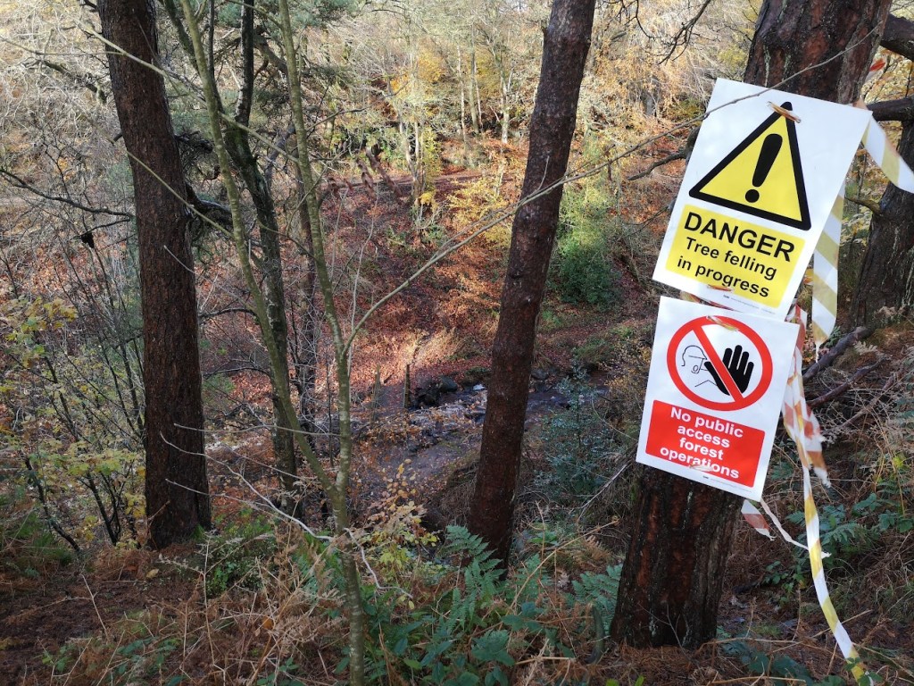 Here are some recent photos from Wyming Brook which show some felling and also some of the damage caused by Storm Babet (Storm BP)