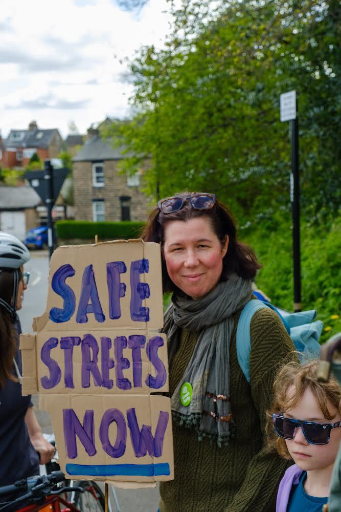 This was a fun family-friendly dual protest to demand pedestrian lights at the traffic lights at Duke Street crossing, safe streets in Walkley and Safe Streets everywhere! See https://safestreetsnow.co.uk/ for more details.
