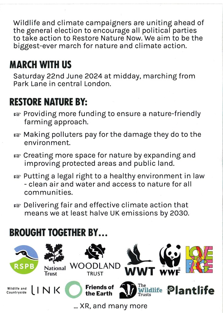 XR Bees are encouraging members of the public to join them at the Restore Nature March in London on Saturday 22nd June. The Restore Nature Now march is supported by a diverse group of dozens of wildlife and environment organisations including the RSPB, The Wildlife Trusts, The Climate Coalition, WWF-UK, National Trust, WWT, Woodland Trust, Wildlife and Countryside Link, Rewilding Britain, Extinction Rebellion and Chris Packham, who are united in the demand to #RestoreNatureNow. It is expected to be the biggest march for nature in the UK.
