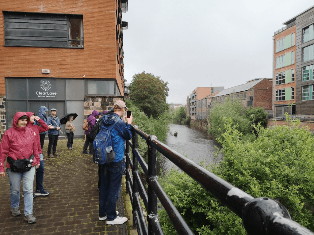 The threat the rivers pose to us is of course flooding. There were many reminders of floods along the route, notably Waterloo Walk, off Rutland Road, which is named after a row of houses that were demolished by the Great Sheffield Flood of 1864 when Dyke Dale dam burst killing 240 people. Much of our walk was underwater during the Sheffield flood of 2007. It was important to note some improvements made since then that lessen the risk of flooding, even though the hotter climate brings more rain and fiercer storms. Nursery Street Pocket Park, alongside the Don, has provided welcome space for the river to expand into in times of extreme rainfall. Soon we will see the great reveal of the River Sheaf as part of the new Sheaf Field Park on the site of Sheffield Castle. There has been a long-running campaign led by the Sheaf and Porters River Trust to ensure this was included in the scheme with the restoration of fish passage.