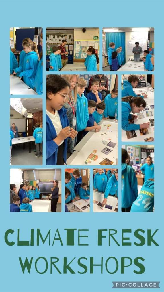 “The year 6 children started science week with workshops on Climate change. Trained volunteers, via Schools’ Climate Education South Yorkshire (SCESY), lead discussion groups. Each group built a ‘Fresk’ of pictures which the children linked together and discussed. This really helped their understanding of the causes and effects of climate change. The children very much enjoyed the workshops and this was a great catalyst for the whole school Climate Action campaign, with year 6 having a focus on Global Goal 7: Affordable and clean energy.
