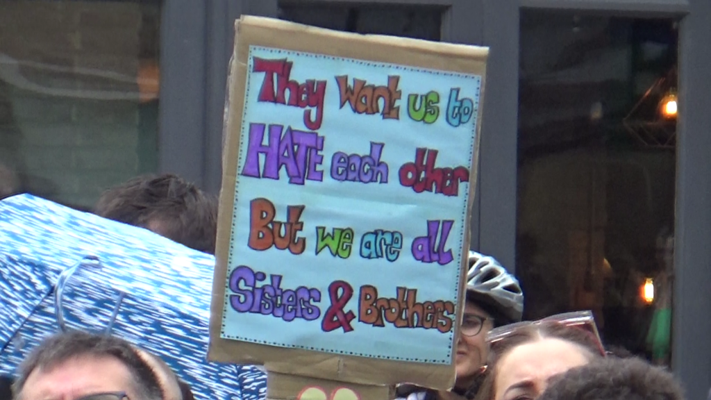 Melinda from City of Sanctuary gave an important contribution explaining how unsafe asylum seekers feel in our city. “If they attack one of us then they are attacking all of us, because we are one community, the people of Sheffield.”