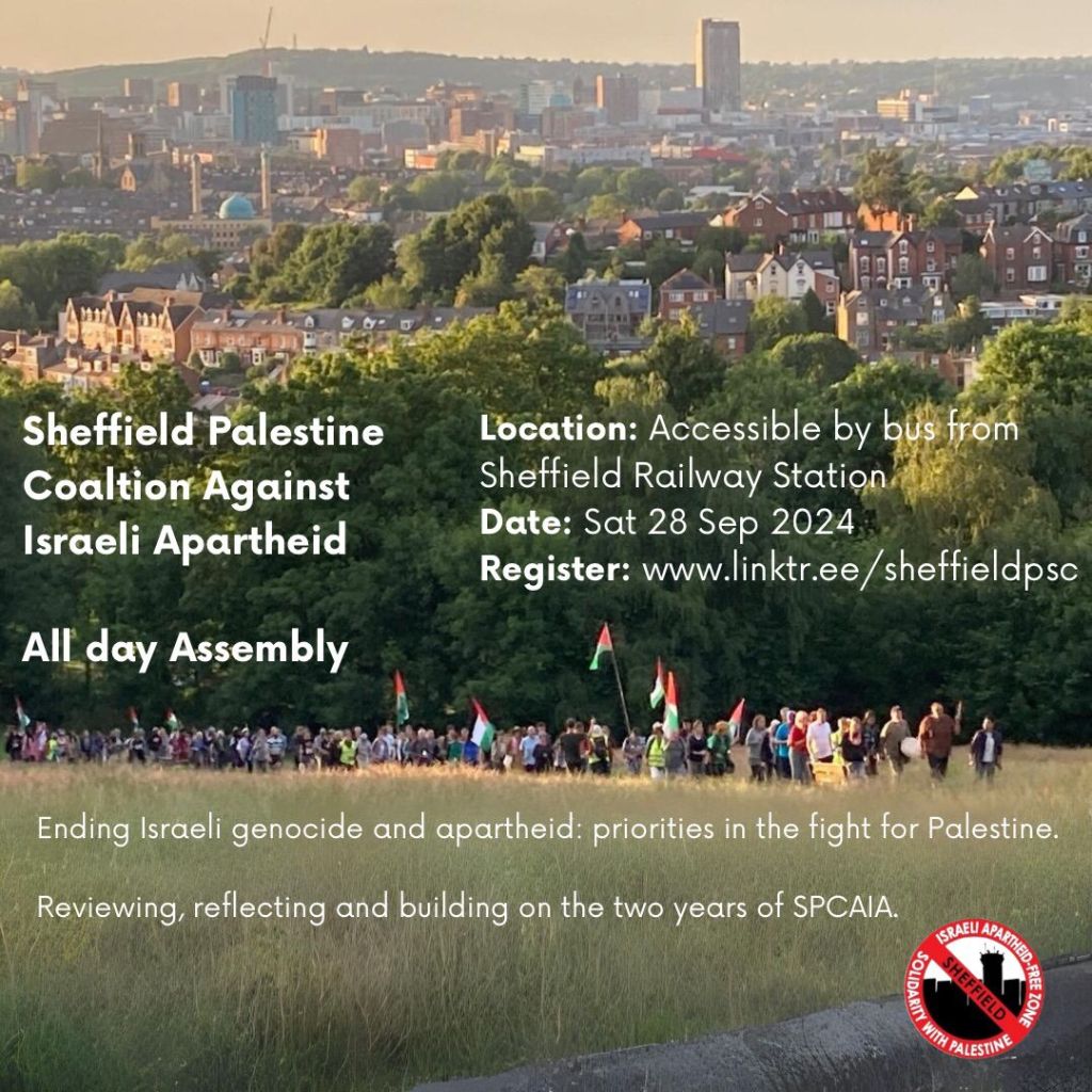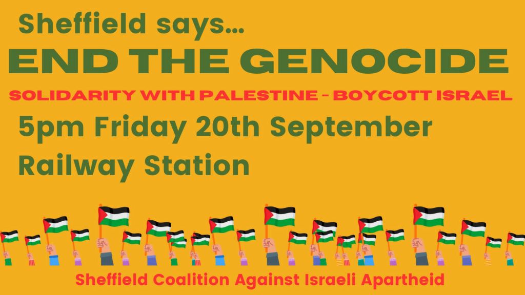 Details of forthcoming local events for Palestine follow. For more info see https://www.sheffieldpsc.org.uk/