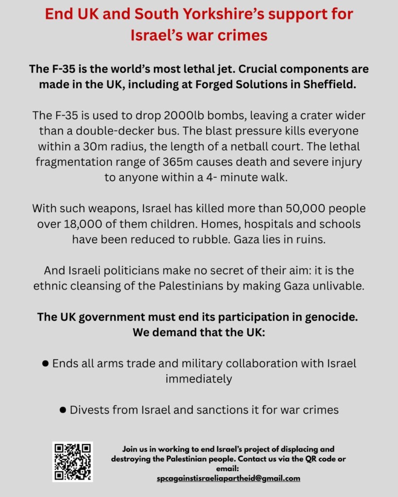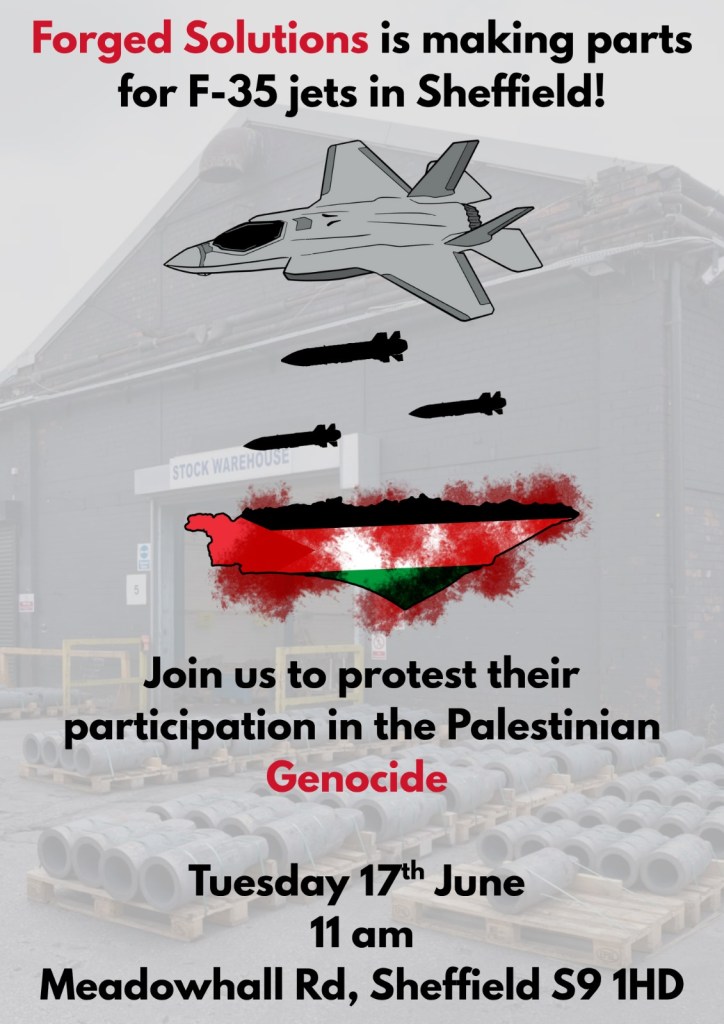 Support the Regional Demonstration to stop Sheffield’s role in supplying F-35’s to Israel