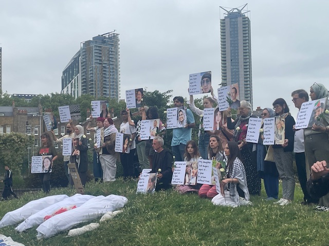 On Saturday, relatives and supporters of the group gathered in the park outside the Imperial War Museum in London for speeches, poems and to show support for their loved ones and for the people of Gaza in the ongoing genocide.