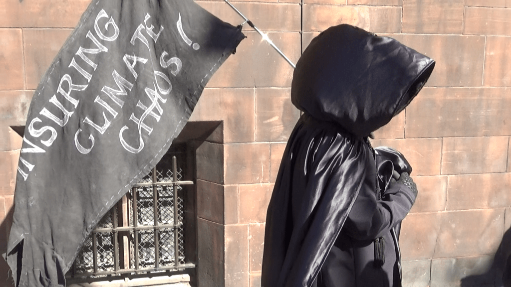 In Manchester on September 11th, local activists joined thousands across the globe to disrupt AXA and AIG, two of the world’s biggest insurers of climate destruction and war crimes.