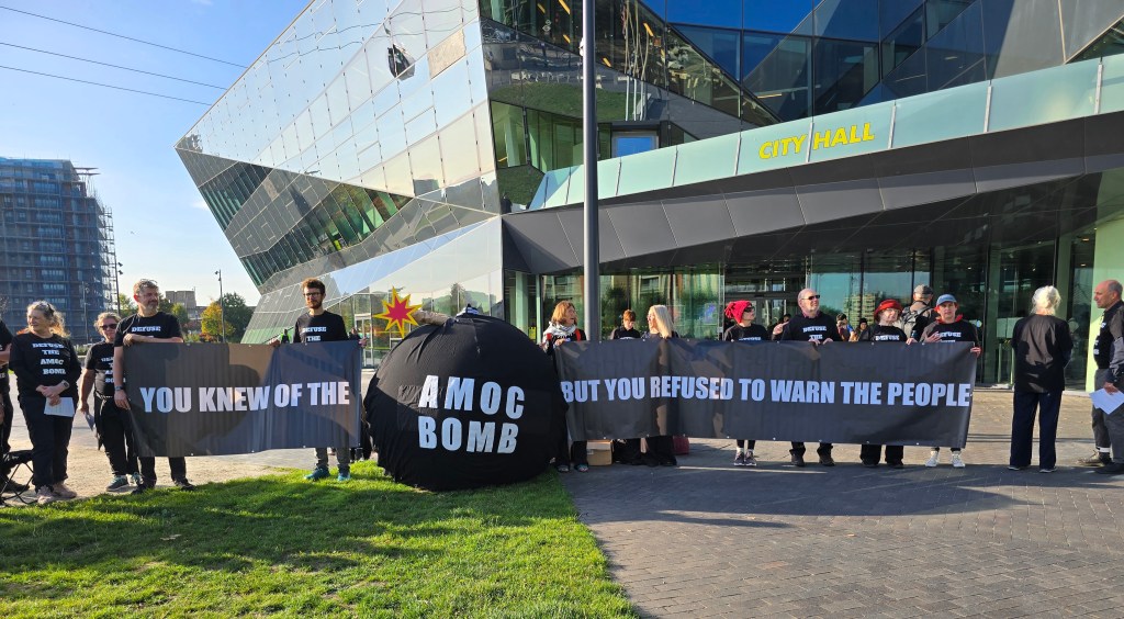 Yesterday in London, due to the lack of attention to the UK’s No.1 National Security threat (AMOC collapse), an ‘AMOC Bomb’ shaped object was planted outside London City Hall.