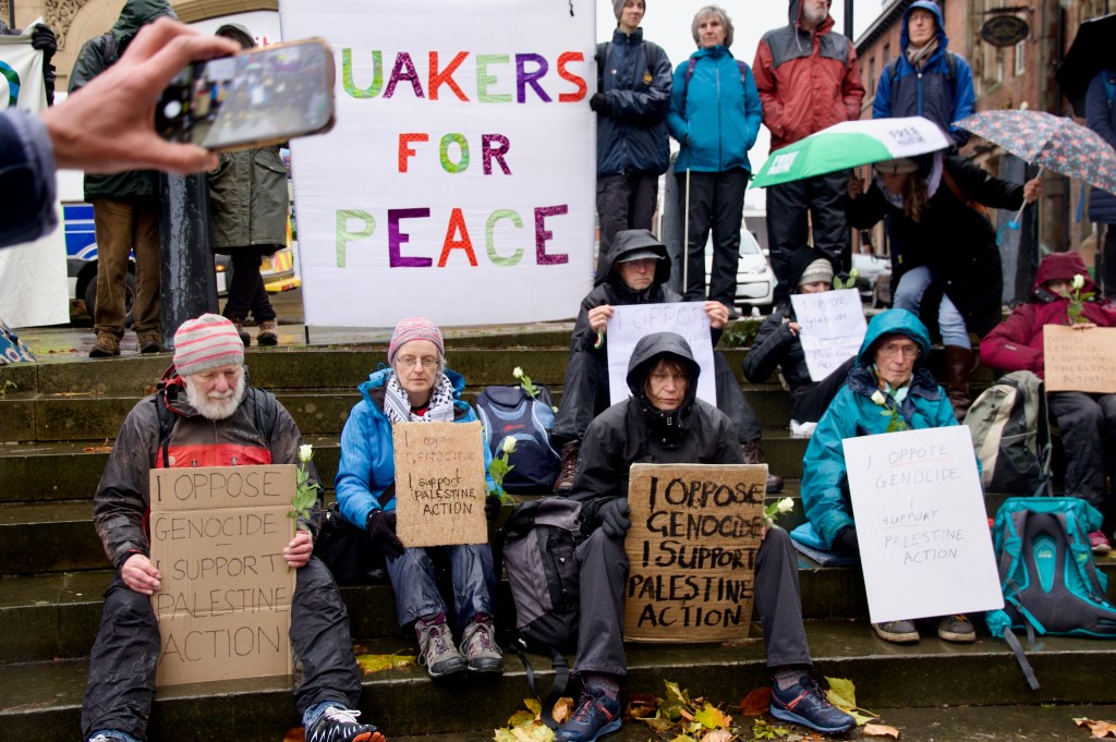 Meanwhile, at a moving event outside Sheffield Cathedral, 17 silent protesters were arrested under terrorism legislation for holding a sign saying “I oppose Genocide, I support Palestine Action”. Around a hundred drenched supporters watched, singing We shall Overcome, cheering and thanking those arrested.