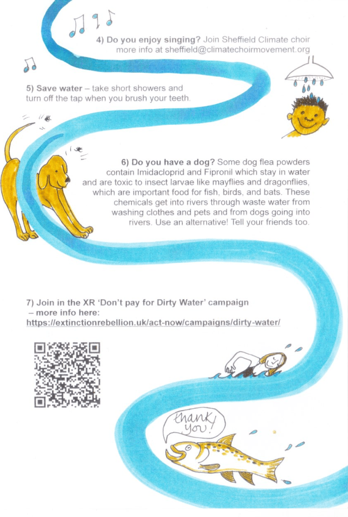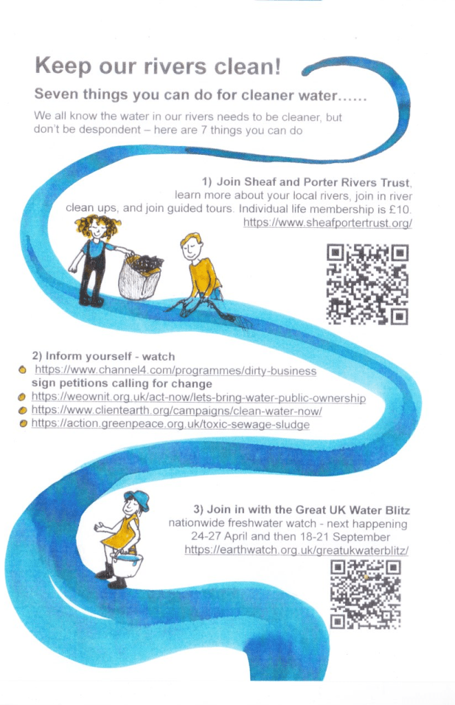 Steph Howlett, co-ordinator of the Sheffield Climate Choir, said, “Our message clearly resonated with people in the park, some of whom came and joined in the singing. Many expressed great concern about the risk to children who love to paddle in the brook in the warmer weather. In particular, people were horrified that there had been a sewage spill into the Porter Brook only 48 hours before our hugely popular Easter Duck Race. We wanted to raise awareness and encourage people to take action. Rather than shouting, we use our singing to try to change hearts and minds”