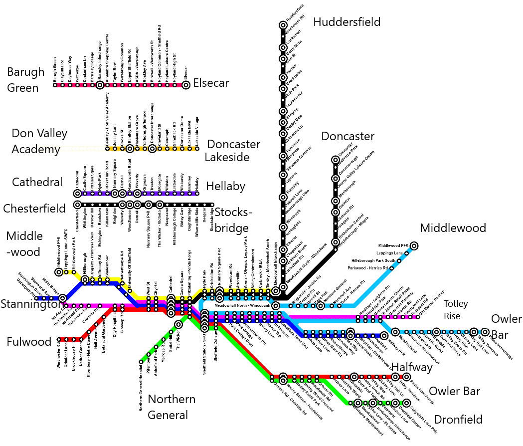 How Supertram could be extended to provide public transport fit for the 21st century. New routes could connect the Hospitals, Chesterfield, Barnsley, Rotherham, Huddersfield, Totley and Stocksbridge