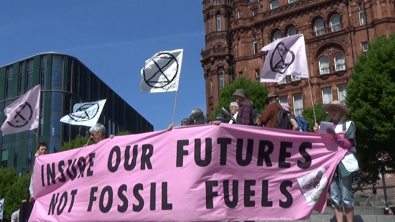 A colourful and dramatic protest from environmental groups greeted delegates at Europe’s largest insurance brokers conference last Wednesday at Manchester Central Convention Centre. The demand was for the industry to stop backing fossil fuel projects. Without this insurance fossil fuel companies would not be able to continue polluting our planet. Sheffield was represented by theContinueContinue reading “Europe’s largest insurance brokers conference confronted with climate protests”